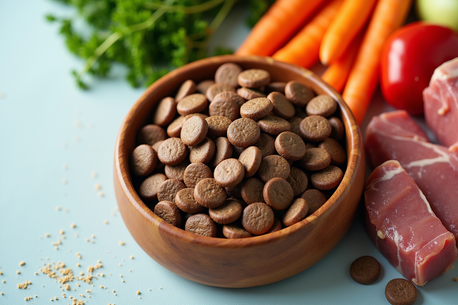 Zutatenliste prüfen: Fleisch sollte als erste Zutat aufgeführt sein – Füllstoffe wie Mais oder Zucker sind Qualitätsmängel.